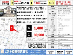 今月20・21日の11時から14時にオープンハウスを開催いたしますので、